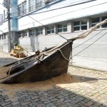 Logo de início, ao chegar no Largo Victor Meirelles, que será o centro de toda a mostra, o visitante já vai se deparar com os fragmentos da embarcação incrivelmente fundeada numa rua de paralelepípedos. É a fragata de Lapérouse chegando a Florianópolis, em pleno século XXI, registrando e vivenciando as mudanças, olhando tudo, reparando as pessoas, os modos de vida e as manifestações culturais.