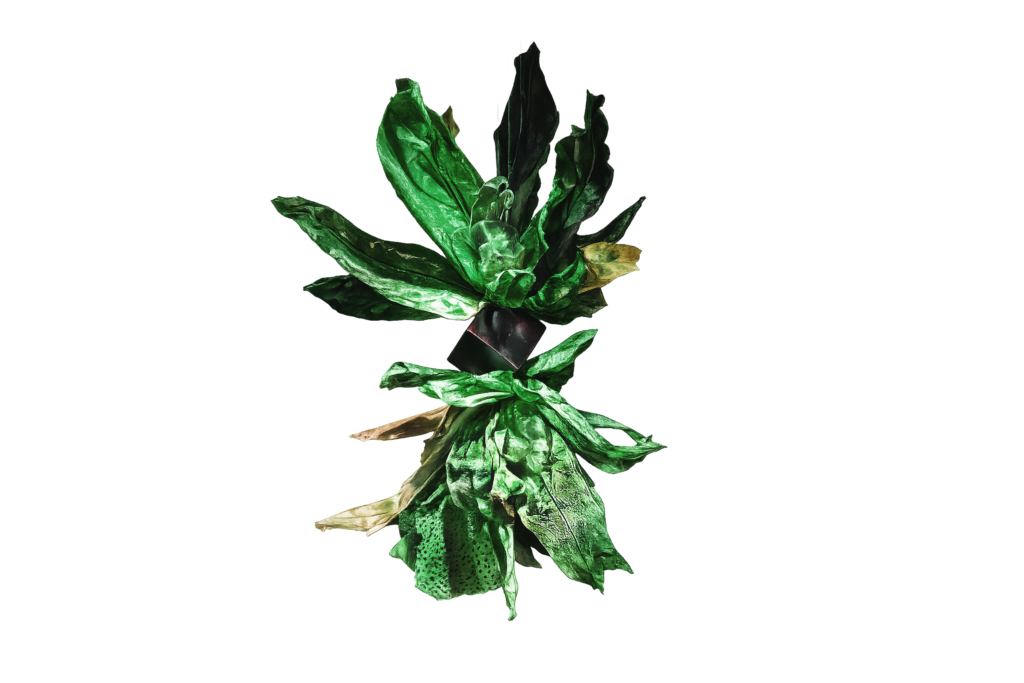 Obra Floresta CyberPunk, por Marc Engler. Escultura de tecido, madeira e resina. Rio Negrinho, 2024. Acervo pessoal/Marc Engler.